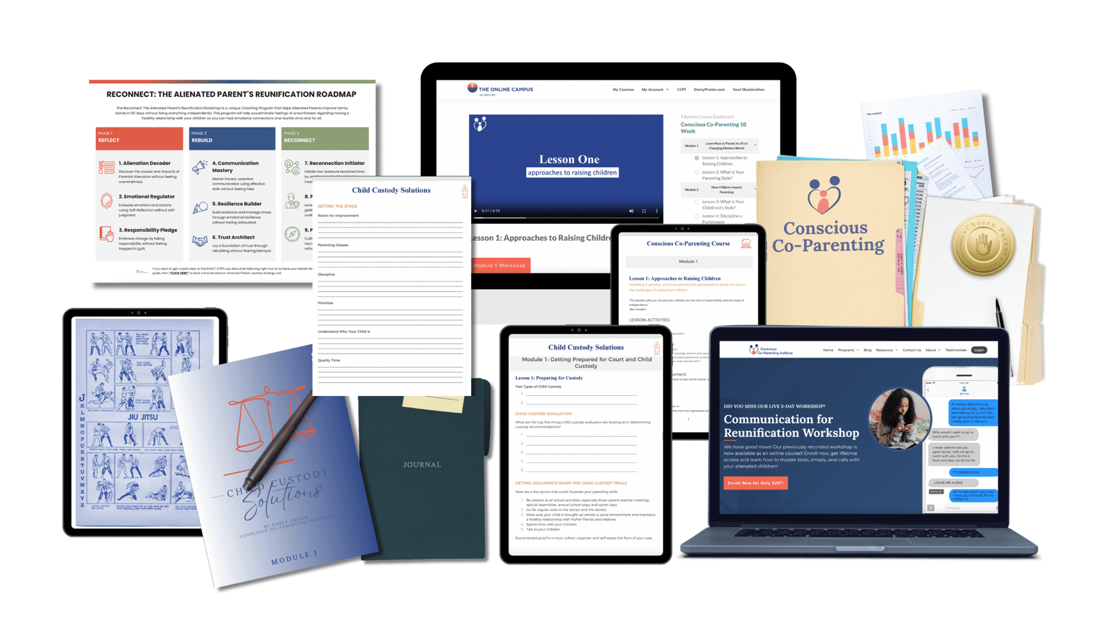 Breakthrough Communication for Reunification, The Art of Loving Communication with Alienated Children, Reconnect: The Alienated Parent’s Reunification Roadmap, Overcoming Obstacles, Child Custody Solutions, Ju-Jitsu Parenting, Conscious Ways for Families, the Conscious Co-Parenting 10-Week Program, Higher Purpose Parenting, Healing from Emotional Trauma, and the Communication for Reunification Workshop